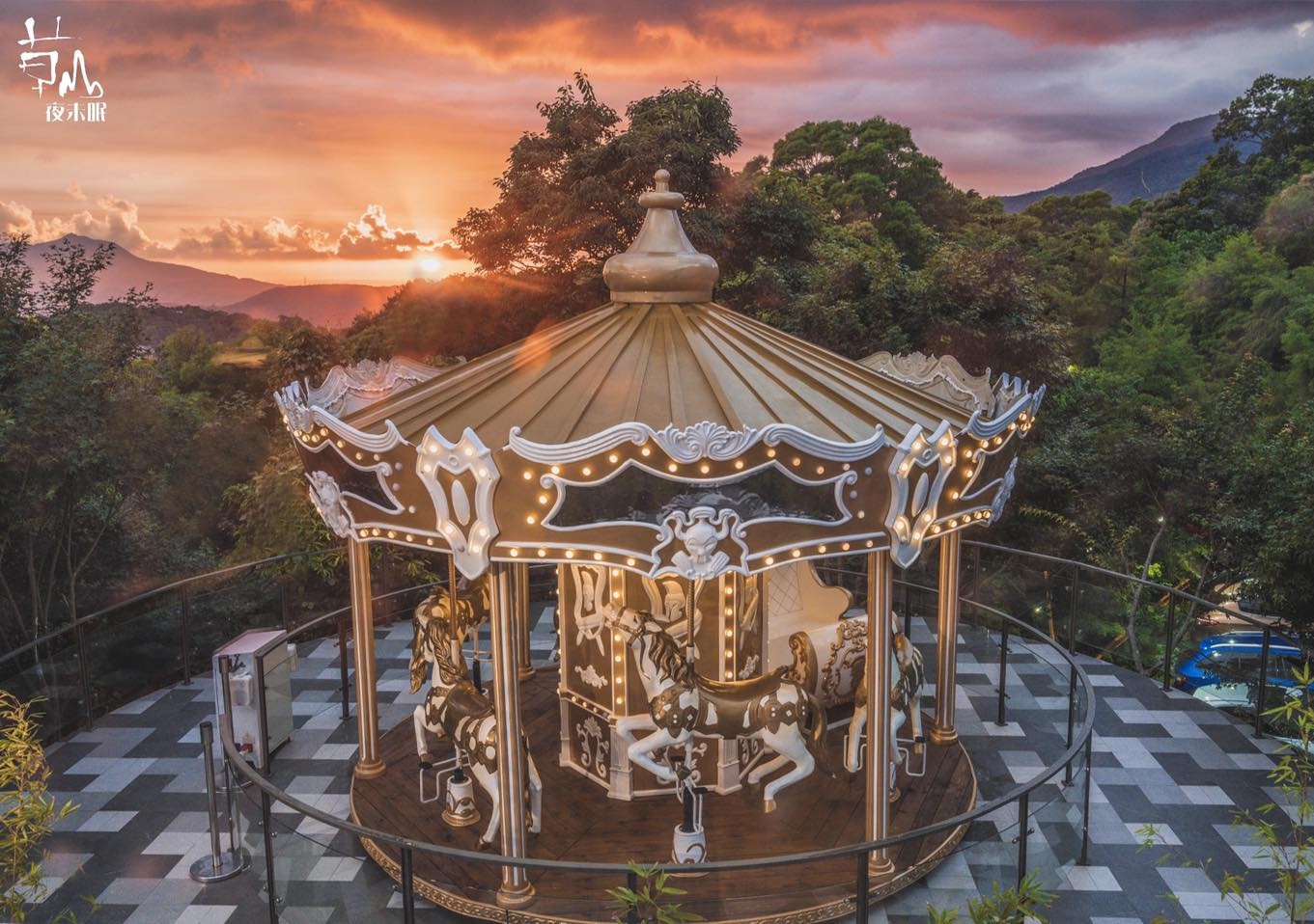 坐享百萬夜景,充滿浪漫氛圍的《草山夜未眠》設有沙發座位、造型包廂等,讓您欣賞陽明山絕美景致。除此之外,來用餐即可免費搭乘店內的旋轉木馬,不論是約會、親子同樂都適宜。
