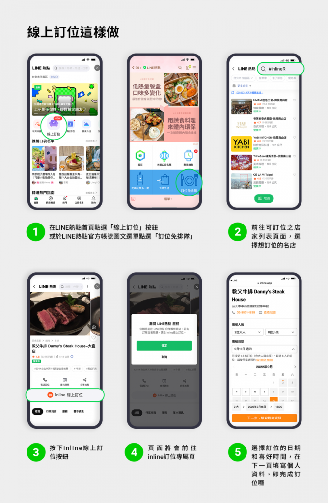 LINE 熱點攜手 inline ,提供一鍵就能線上訂位、線上訂餐的便利服務