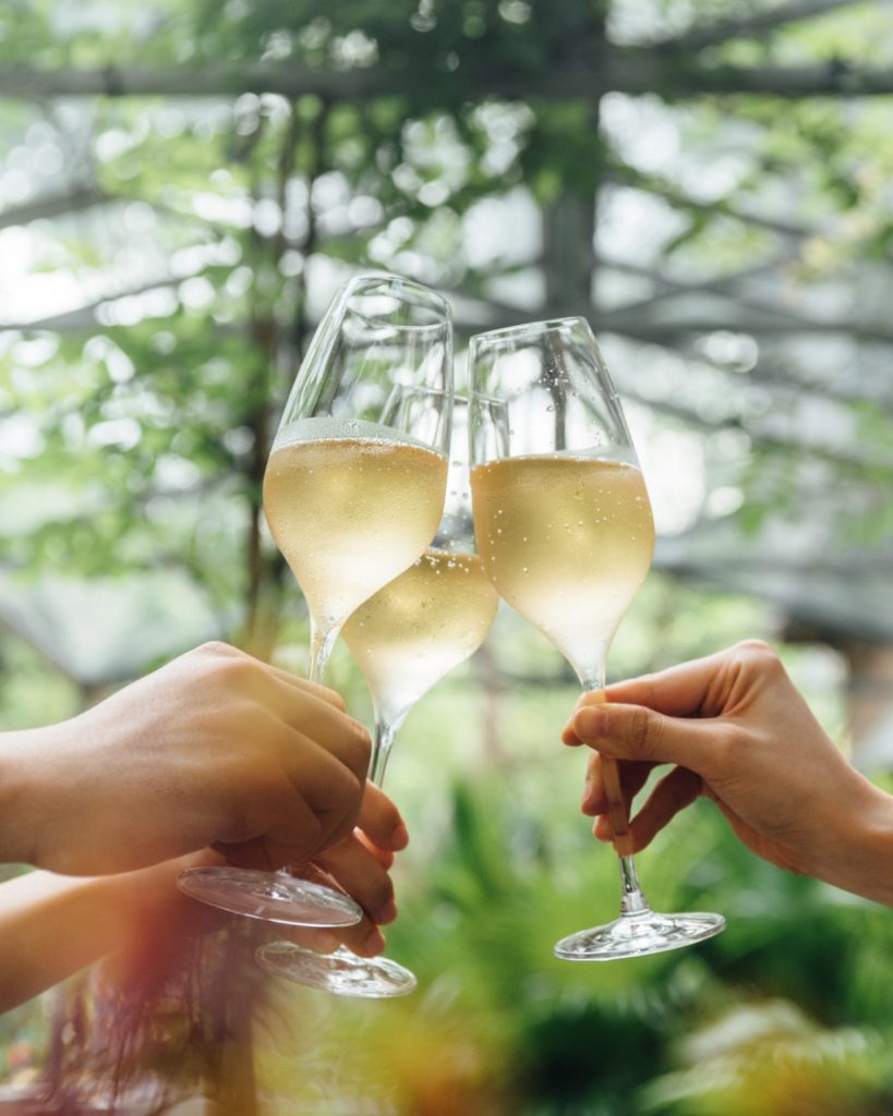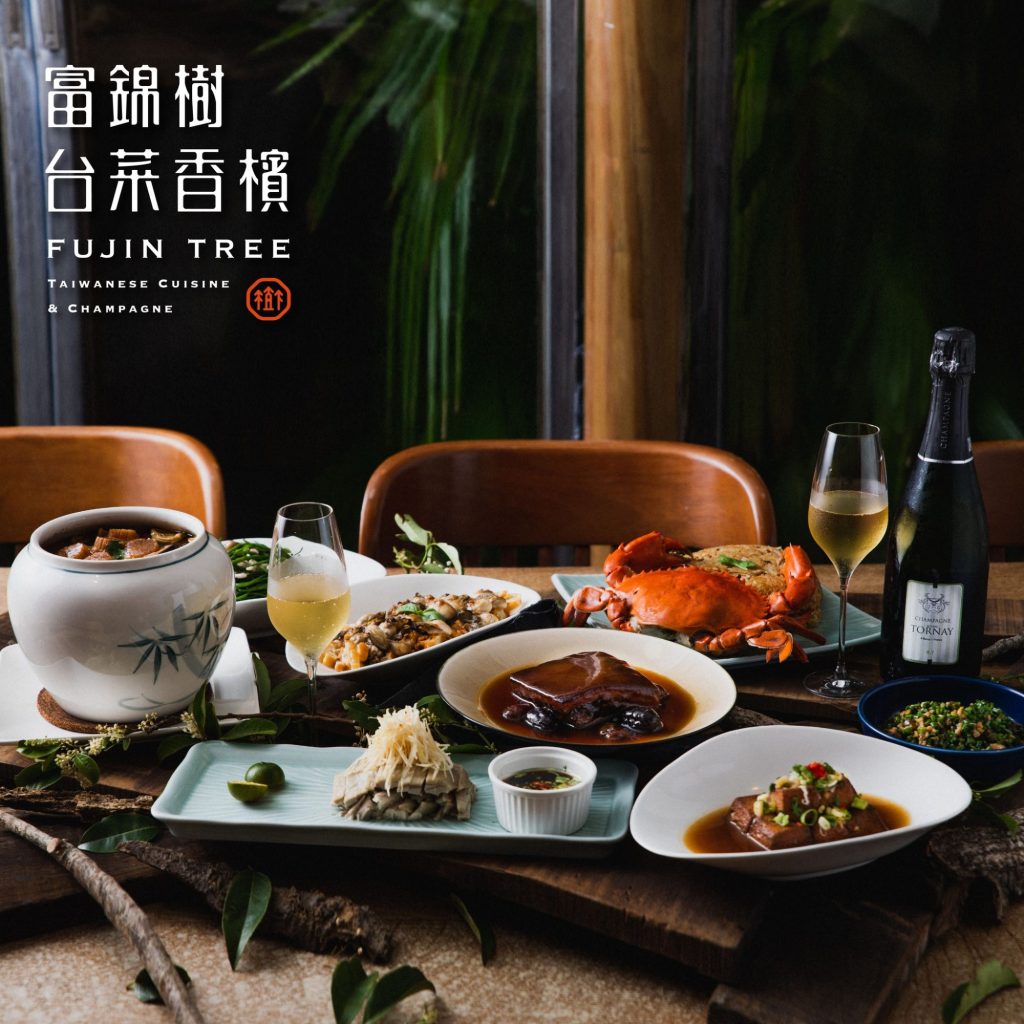 在「富錦樹台菜香檳」,你可以邊看著外面的庭院,一道道細細品嚐台菜;你可以喝著香檳,看著療癒泡泡,在高腳杯裡優雅跳躍。