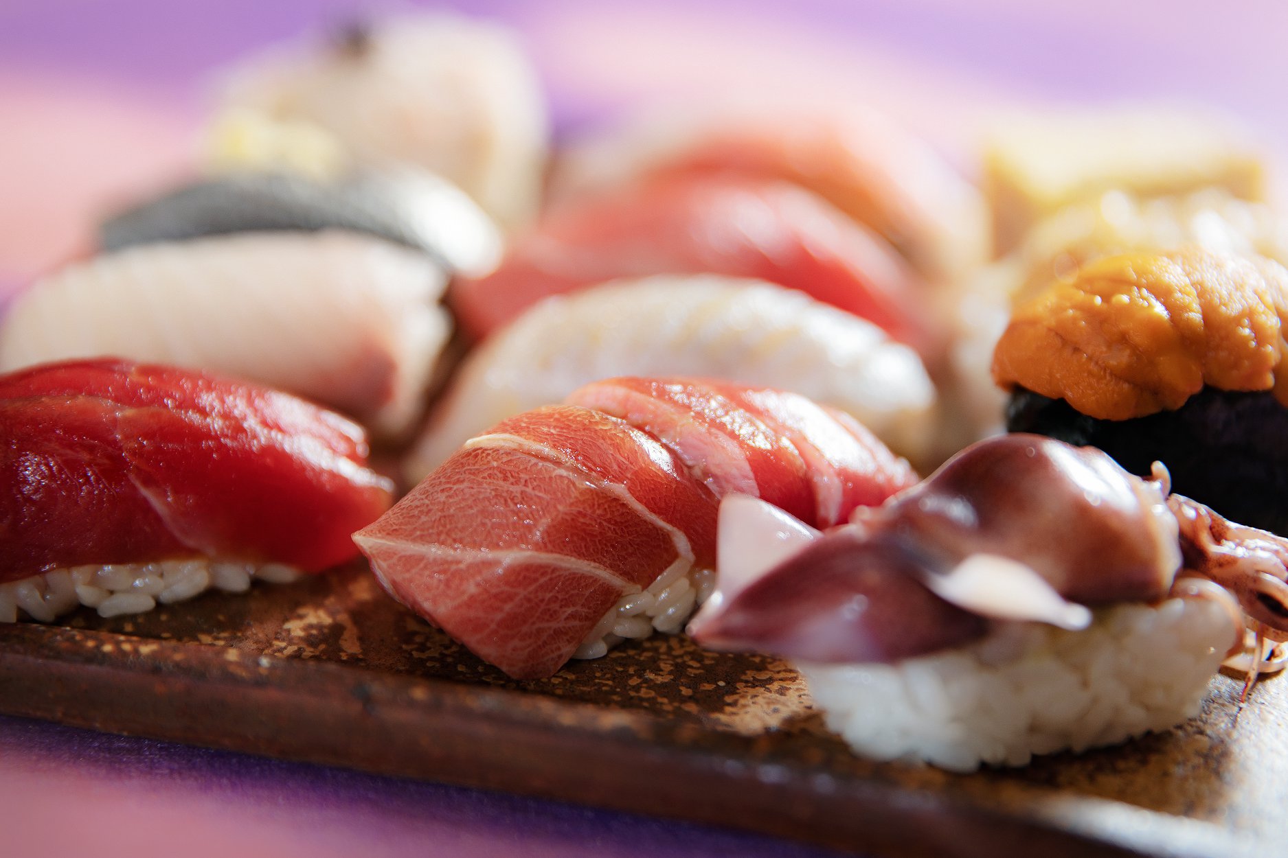 餐廳提供江戶前風格壽司,採用一致比例的紅醋和白醋製作醋飯。食材則多選用來自日本的新鮮食材,並以江戶前的做法,善用魚類放置時間作適度熟成。