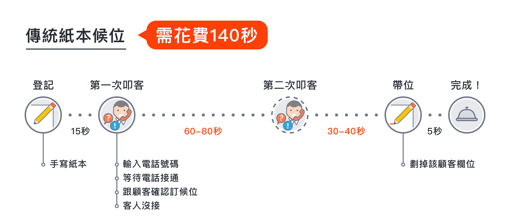 使用傳統紙本登記訂位,除了餐廳人員手寫速度較慢以外,