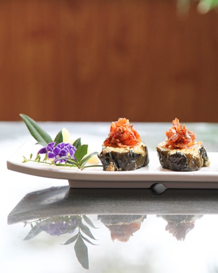 選用帶有膠質的和牛臉頰,紅燒後香煎,放上雞蛋豆腐,搭配泡椒、酸豆、蕃茄,最後佐以豆瓣醬、細嫩絞肉和主廚特調的川味醬汁,創造出層次豐富的絕佳美味。