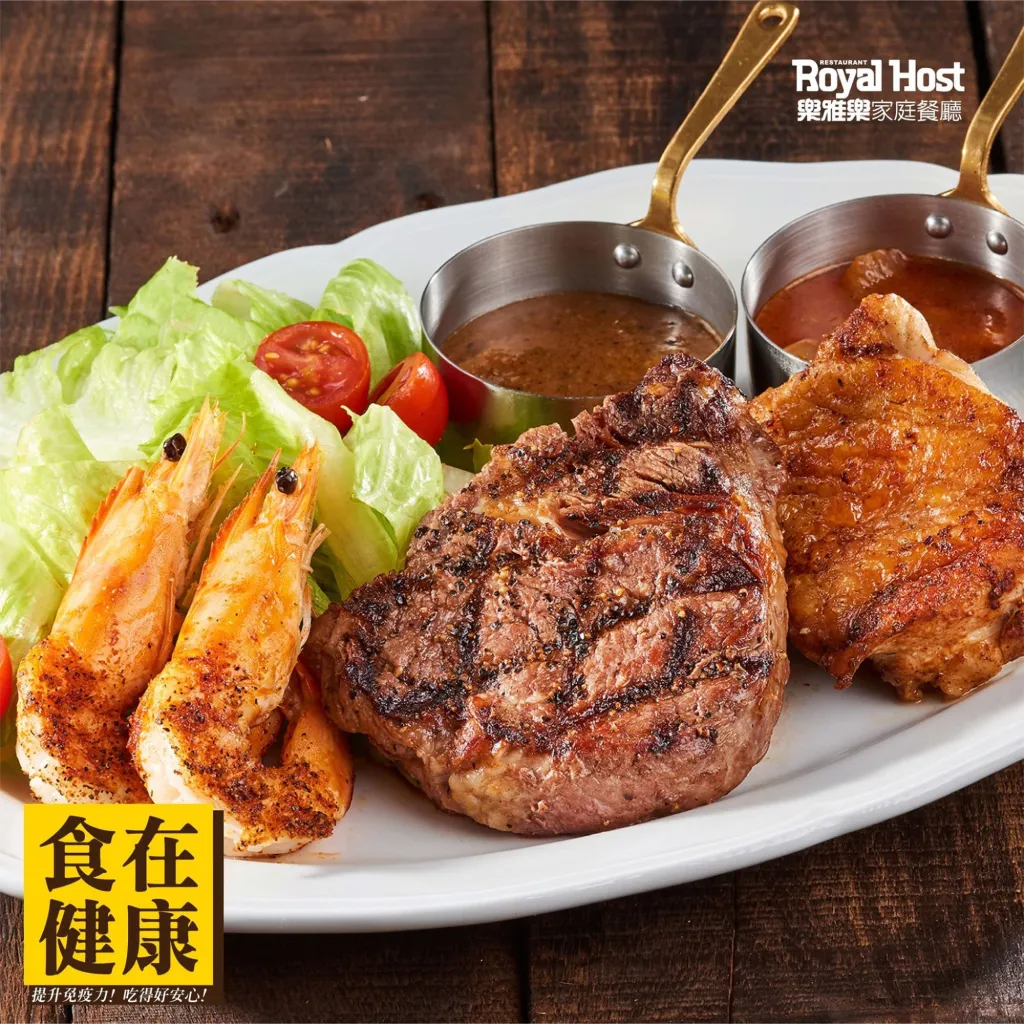 ▲份量十足的沙朗牛排海鮮鮮蔬拼盤,選用口感軟嫩的紐西蘭天然放牧草飼牛、多汁香料雞排,和香煎藍鑽蝦,一次可以品嘗到海陸雙拼的美味。圖片來源:品牌 FB