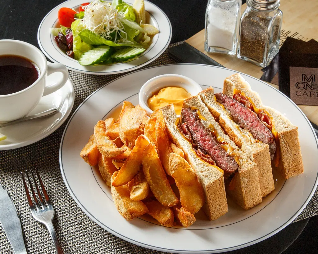 ▲「天堂堡」厚實多汁的牛肉排,搭配酥脆培根、焦糖化的香甜洋蔥,與溫熱融化的香濃起司,吃一口給你彷彿置身天堂的美味。圖片來源: M one Cafe
