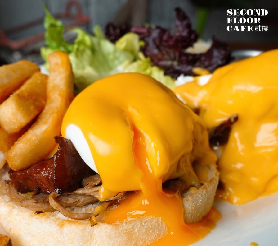 ▲必吃「班尼迪克蛋」切開的瞬間蛋液流出,搭配瑪芬堡的鬆軟蓬鬆,療癒口感吃了心情好一整天。圖片來源:貳樓 FB
