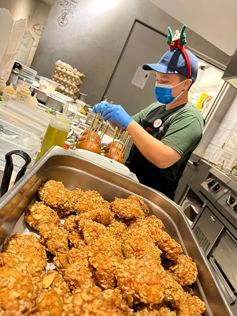 ▲酥脆外皮混進健康的燕麥、杏仁,吃起來比一般炸雞更營養、更無負擔!炸雞則是使用優格醃製,軟嫩又多汁。圖片來源: gonna FB
