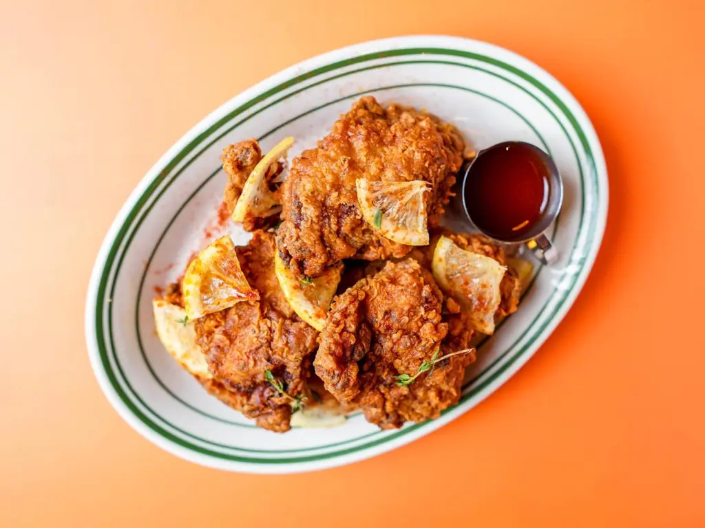 ▲楓糖漿和炸雞的組合,是源自紐澳良的創意搭配,傳統美國南方會將炸雞配上楓糖漿和鬆餅一起享用。樂子版本的楓糖炸雞,則是加入美國家庭必備的亞洲辣醬-是拉差醬,能夠享受到鹹、甜、辣融合後的過癮滋味。圖片來源:品牌 FB