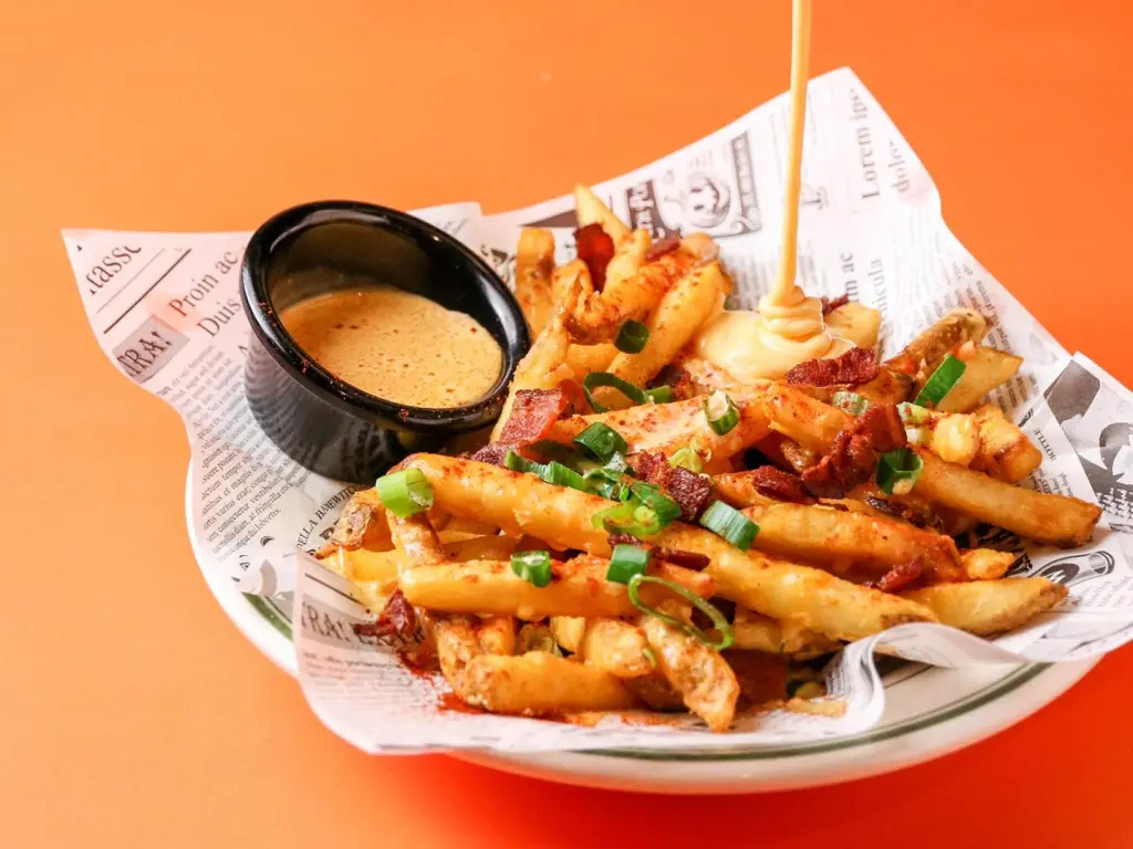 ▲美式料理裡不可獲缺的薯條,在樂子能吃到更道地的吃法。炸得外酥內軟的美式薯條,撒上培根和青蔥後,再淋上濃郁起司醬,療癒感滿分。圖片來源:品牌 FB