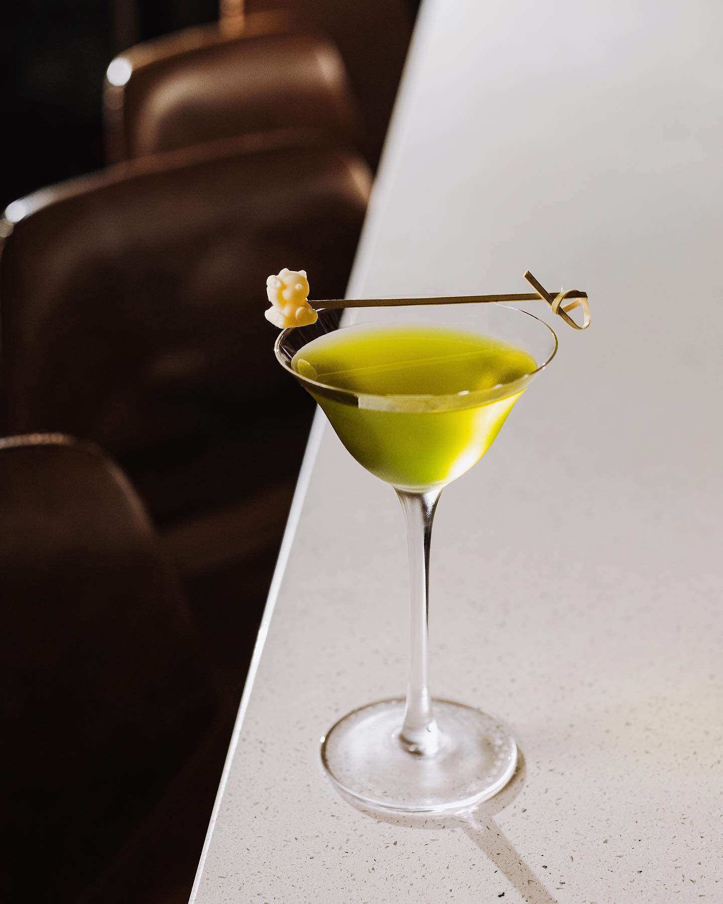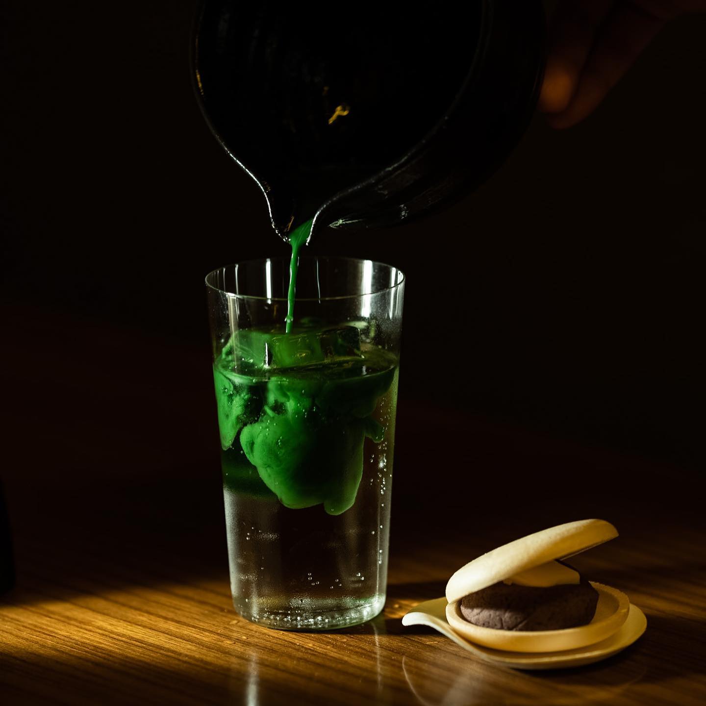 「K-TEA-V」除命名取自 KTV 諧音外,靈感也是以新加坡 KTV 裡最常見的組合:威士忌&綠茶作為發想,並加入艾碧斯、抹茶調製而成,剛入口時茶香清新,隨之而來的則是飽滿的威士忌酒香與濃郁青草香,趣味十足。