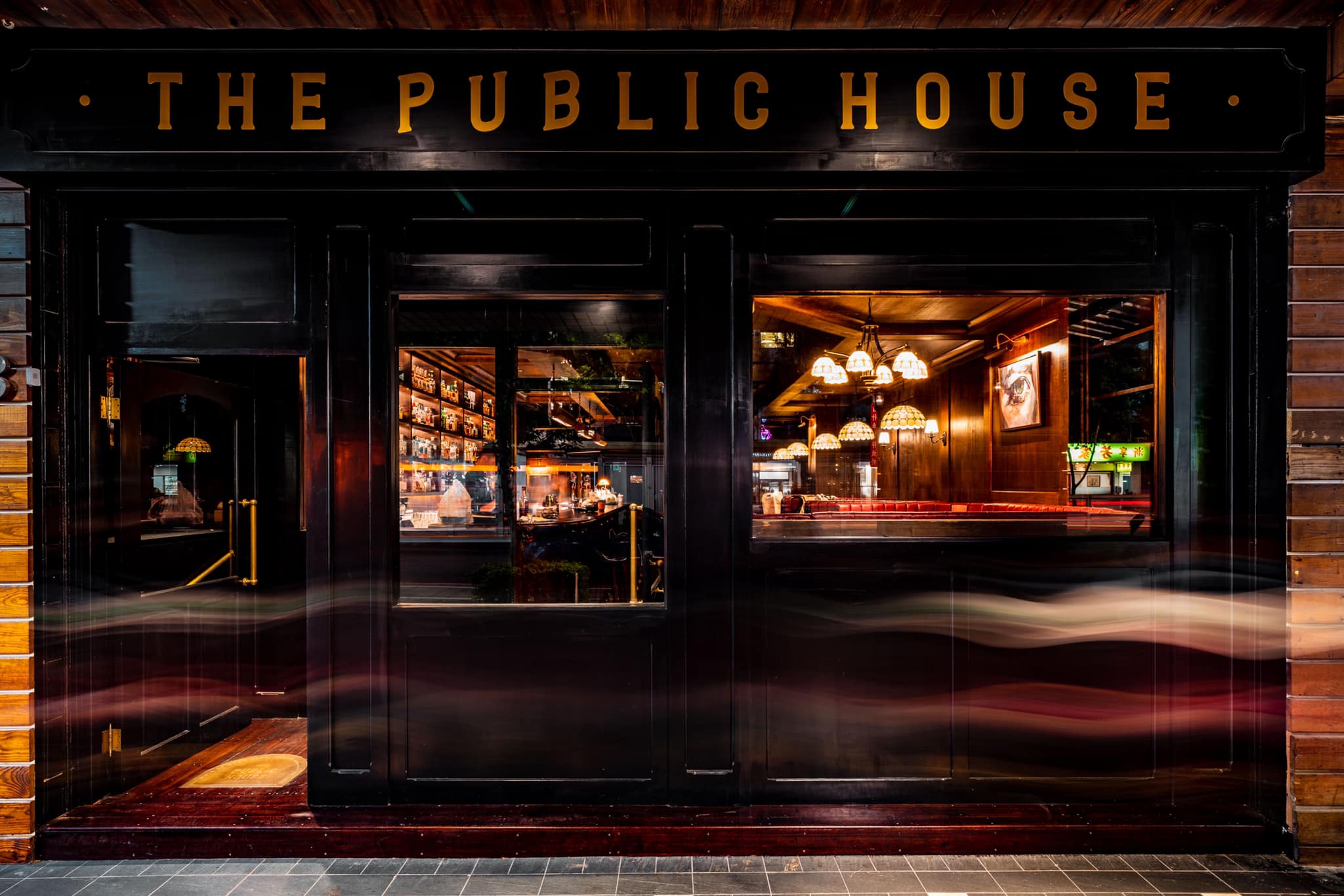 走英倫風酒吧的《The Public House》,裝潢使用英國酒吧常見的深色木紋,搭配店內復古的燈飾與深紅色皮革沙發,營造出異國感十足的微醺空間。