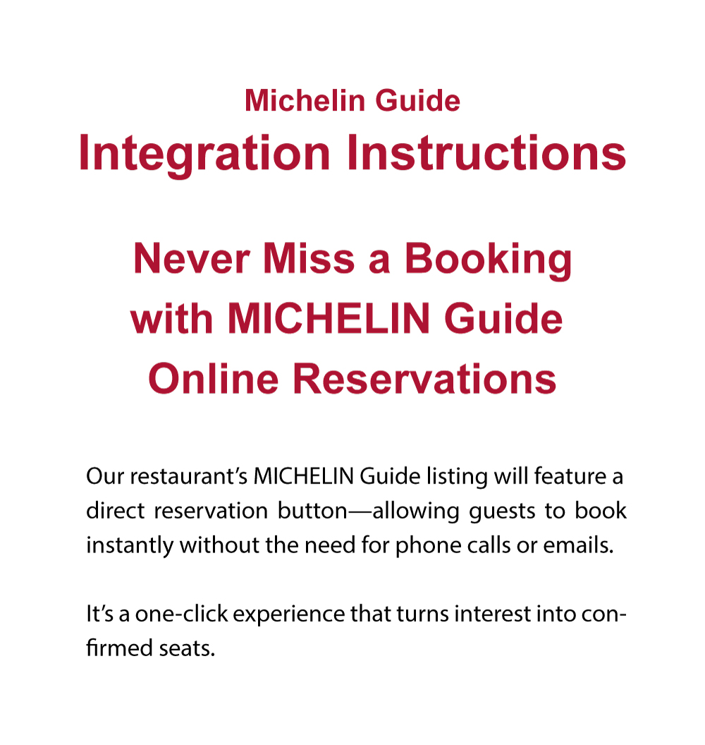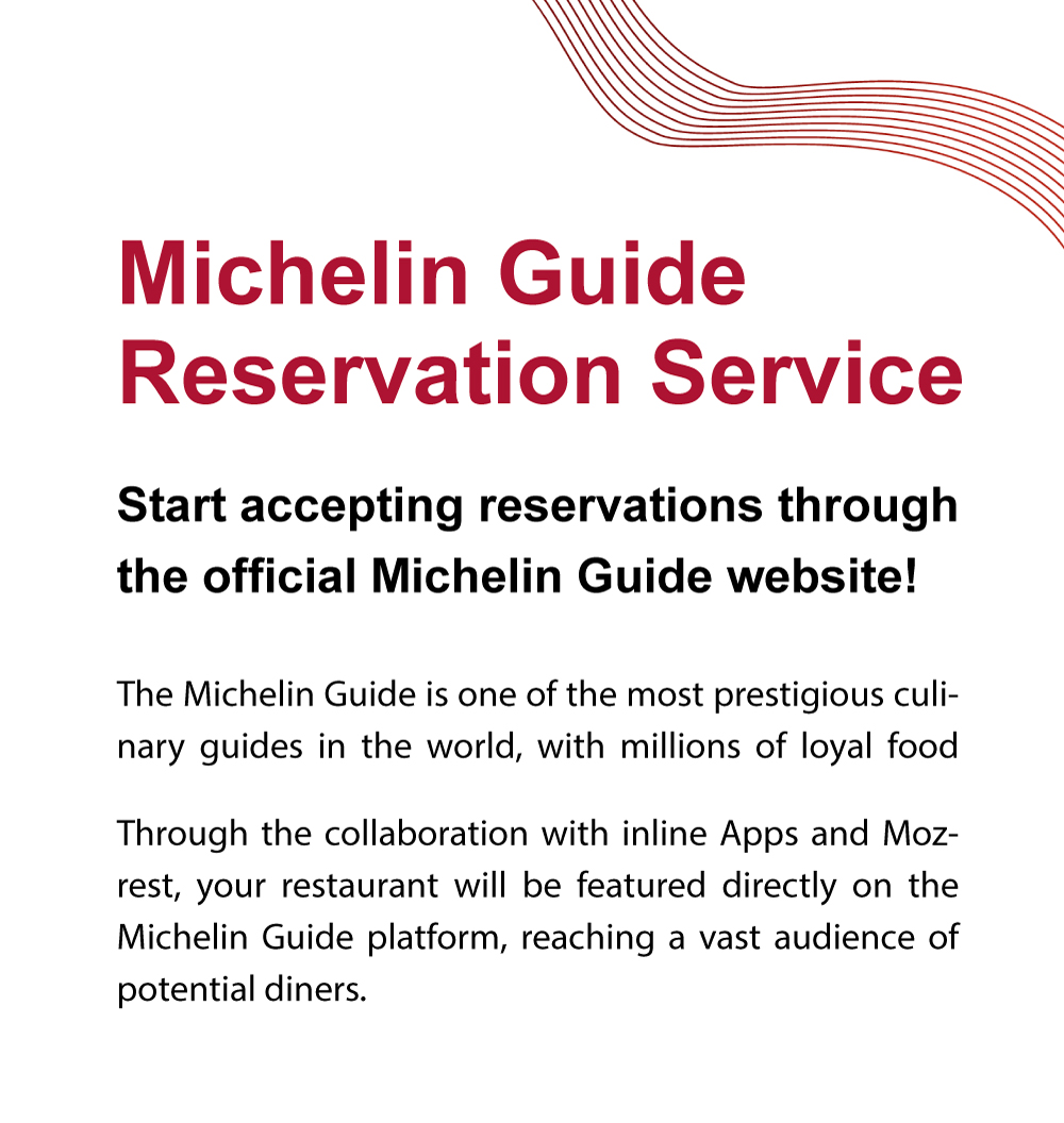 As one of the world’s most prestigious culinary authorities, the MICHELIN Guide attracts millions of passionate food lovers worldwide. By integrating your restaurant with the MICHELIN Guide through inline and Mozrest, you gain direct access to this elite audience—right where they’re searching and booking.