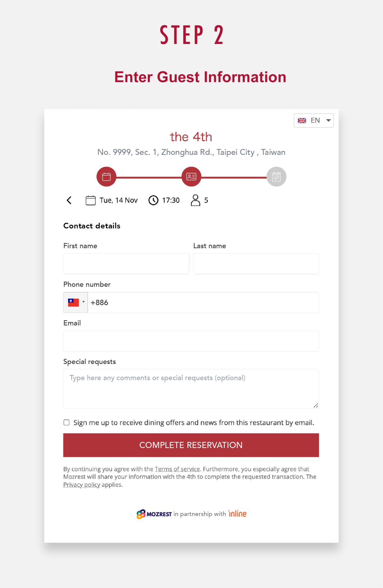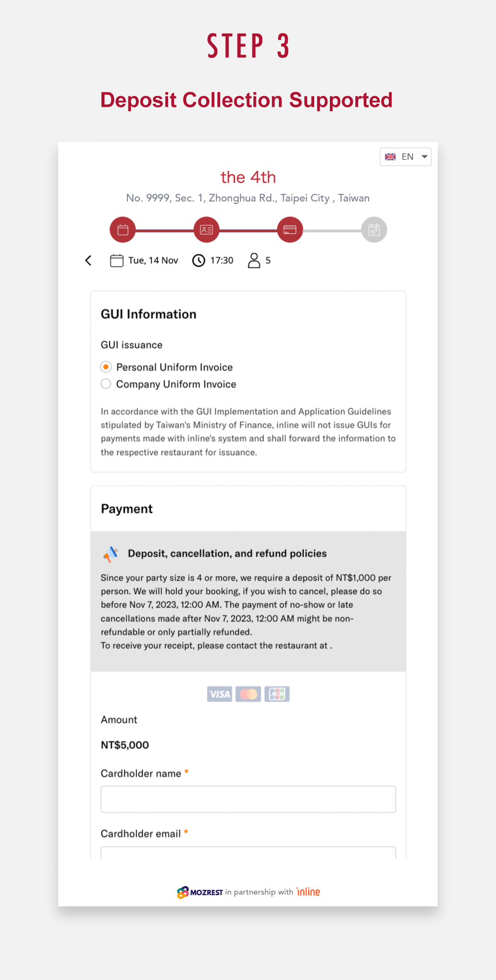 inline will collect the reservation service fees on behalf of the MICHELIN Guide and handle the payment process for you. There’s no need for you to manage