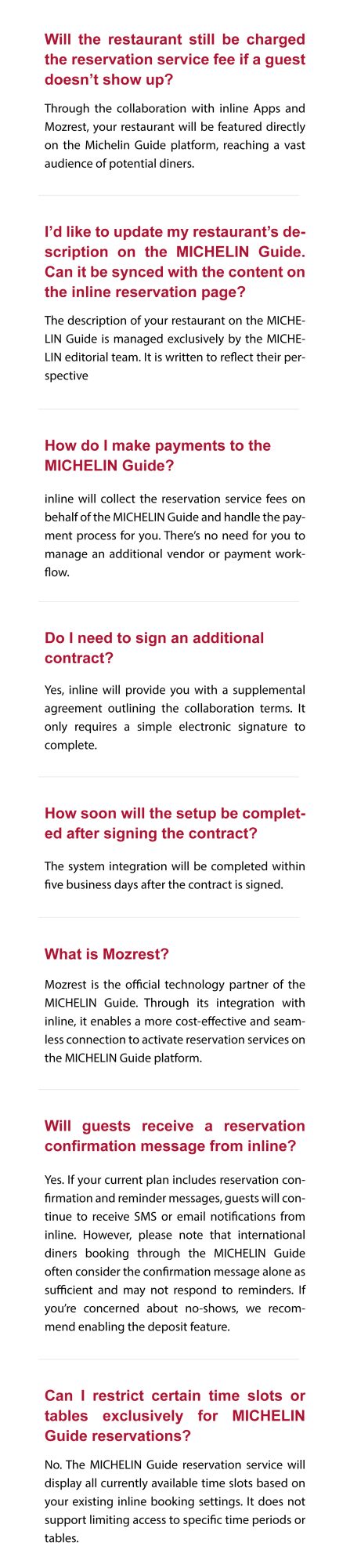 Michelin Reservation Frequently Asked Questions
