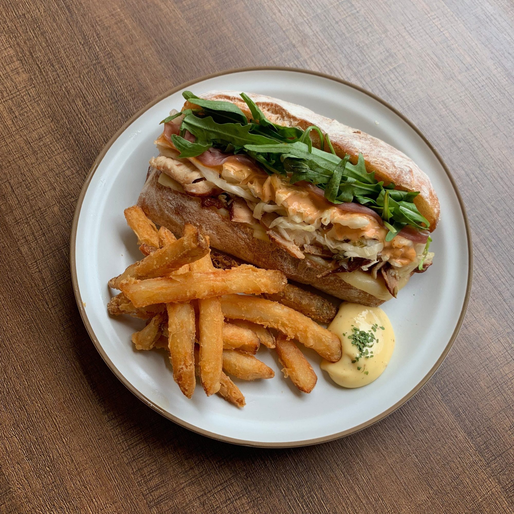 延續 moonbaking 的麵包精神與歐式料理,讓餐搭麵包擁有更多不同選擇。『生火腿燻雞巧巴達』內有自製酸菜、煙燻雞肉、熟成火腿、蜂蜜巧巴達,一口咬下令人滿足!